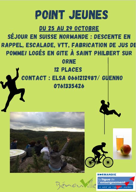 La commune de Bénouville a établi une convention de partenariat pour les loisirs éducatifs Enfance- Jeunesse, les temps d’activités périscolaires et les temps de garderie avec la Ligue de l’enseignement de Normandie, association d’Education Populaire, complémentaire de l’école publique. Son équipe œuvre, par le développement des loisirs éducatifs (centre de loisirs, local jeune, activités périscolaires…) à l’épanouissement des enfants, des jeunes à leur formation de futurs citoyens autonomes et responsables, à la mixité sociale et à l’apprentissage du « vivre ensemble ».