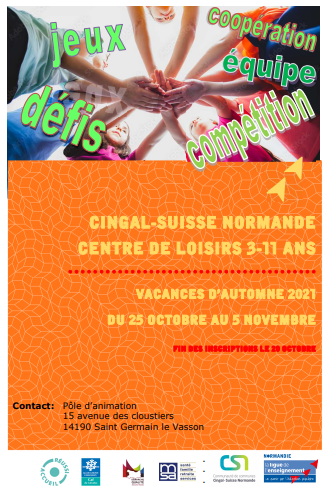 La communauté de communes Cingal/ Suisse-Normande a établi une convention de partenariat pour les loisirs éducatifs Enfance-jeunesse avec la Ligue de l’enseignement de Normandie, association d’Éducation Populaire, complémentaire de l’école publique. Son équipe œuvre, par le développement des loisirs éducatifs (centre de loisirs, local jeunes, activités périscolaires…), à l’épanouissement des enfants, des jeunes à leur formation de futures citoyens autonome et responsables, à la mixité sociale et à l’apprentissage du « vivre ensemble ».
