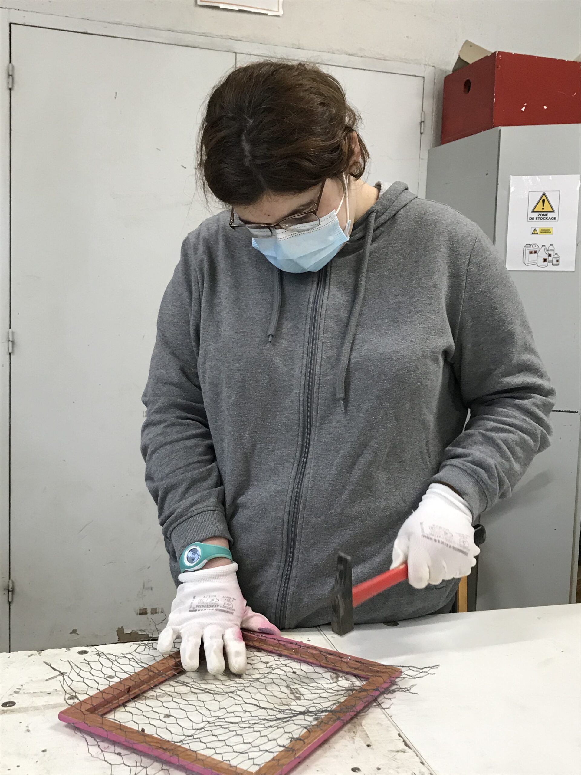 Le mardi, 6 jeunes accompagnés et encadrés par 2 éducatrices découvrent les outils, la manipulation et le toucher du bois dans le respect des mesures de sécurité.