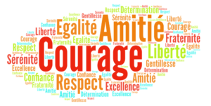Le nuage des valeurs selon les élèves de cycles 2 et 3 de l’école du Fresne-Camilly.