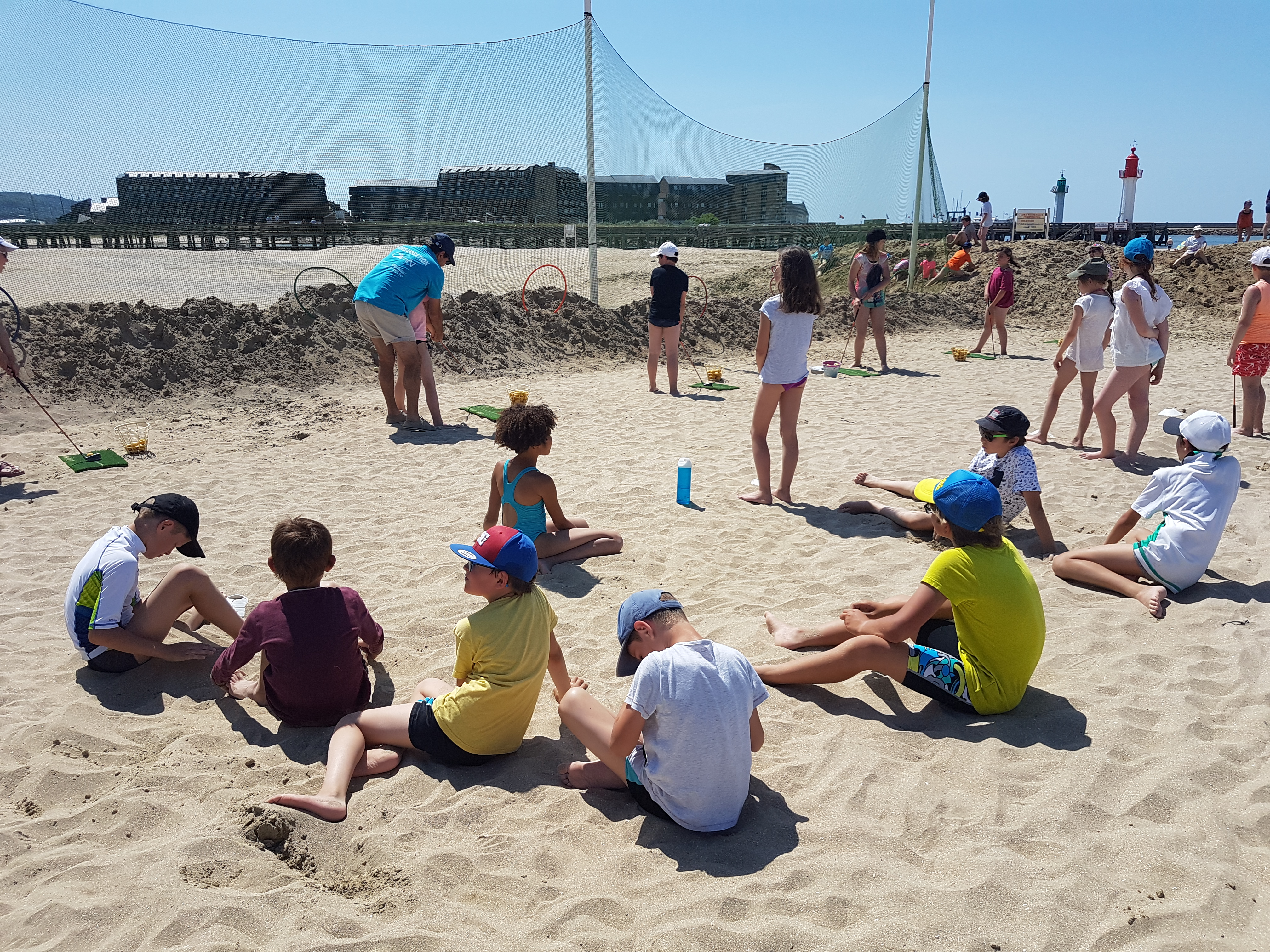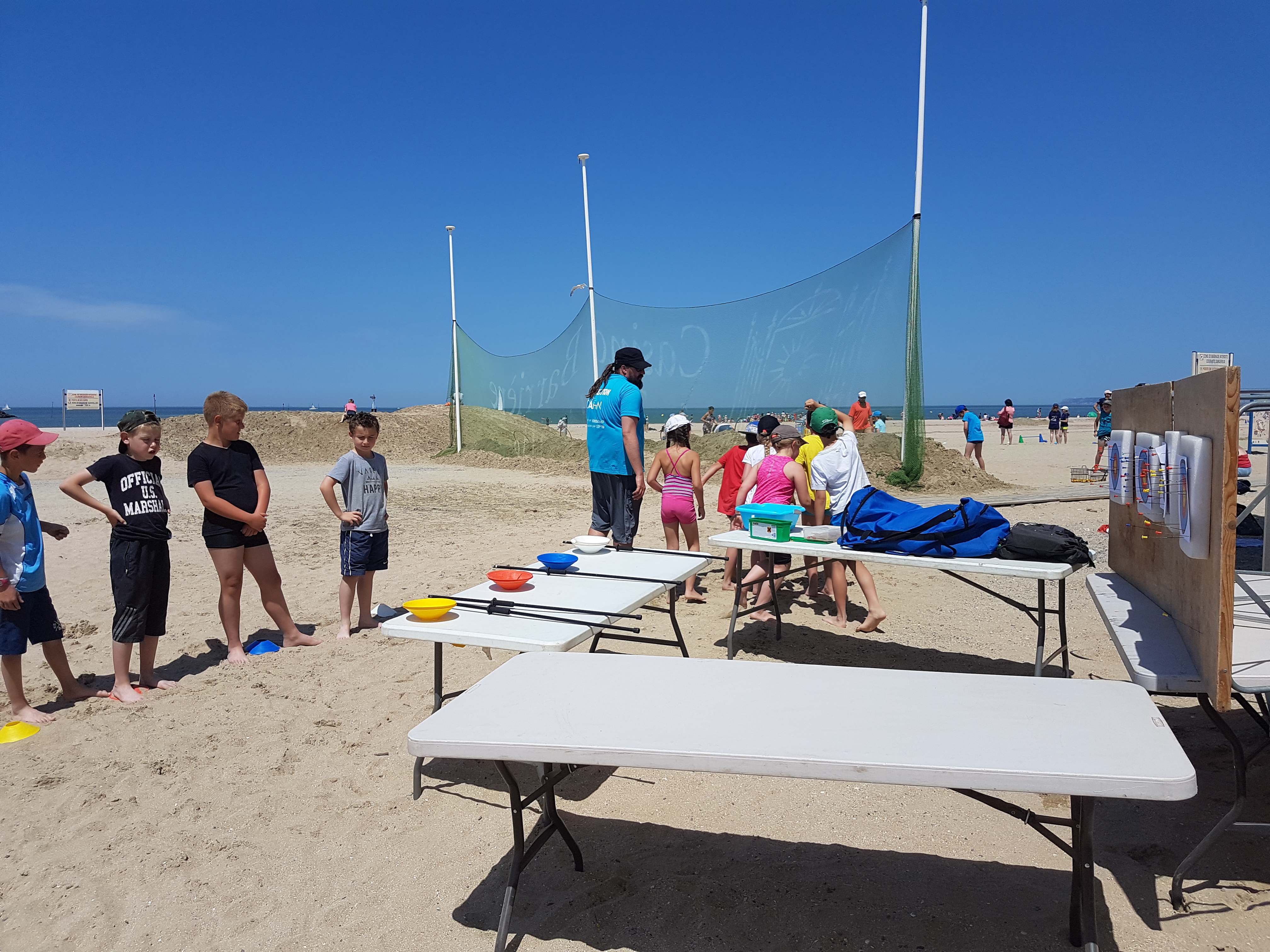 Mercredi 14 juin, ce sont presque 720 enfants rassemblés sur la plage qui ont pratiqué divers sports et activités. Au programme : zodiac, kayak, jeux aquatiques, beach soccer, sand ball, pétanque, golf, sarbacane, tchoukball…Et la baignade surveillée de l’après-midi a ravi les enfants et était la bienvenue en raison du soleil de plomb !